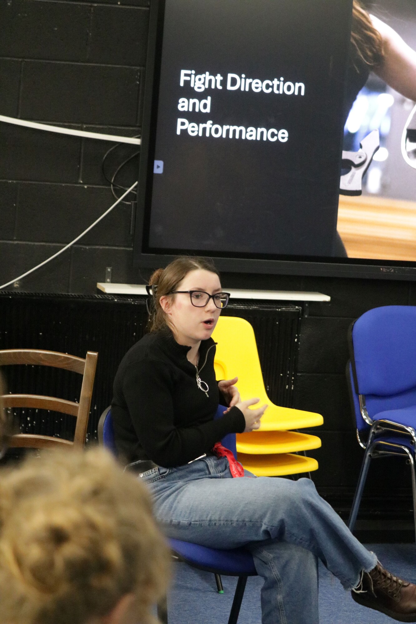 Abi shared her highlight reel of her favourite productions and gave a brief overview of the safe choreography of stage combat. If any students are interested in learning more about how to get training and certification in stage combat and sword work, we can help put you in touch with Abi.