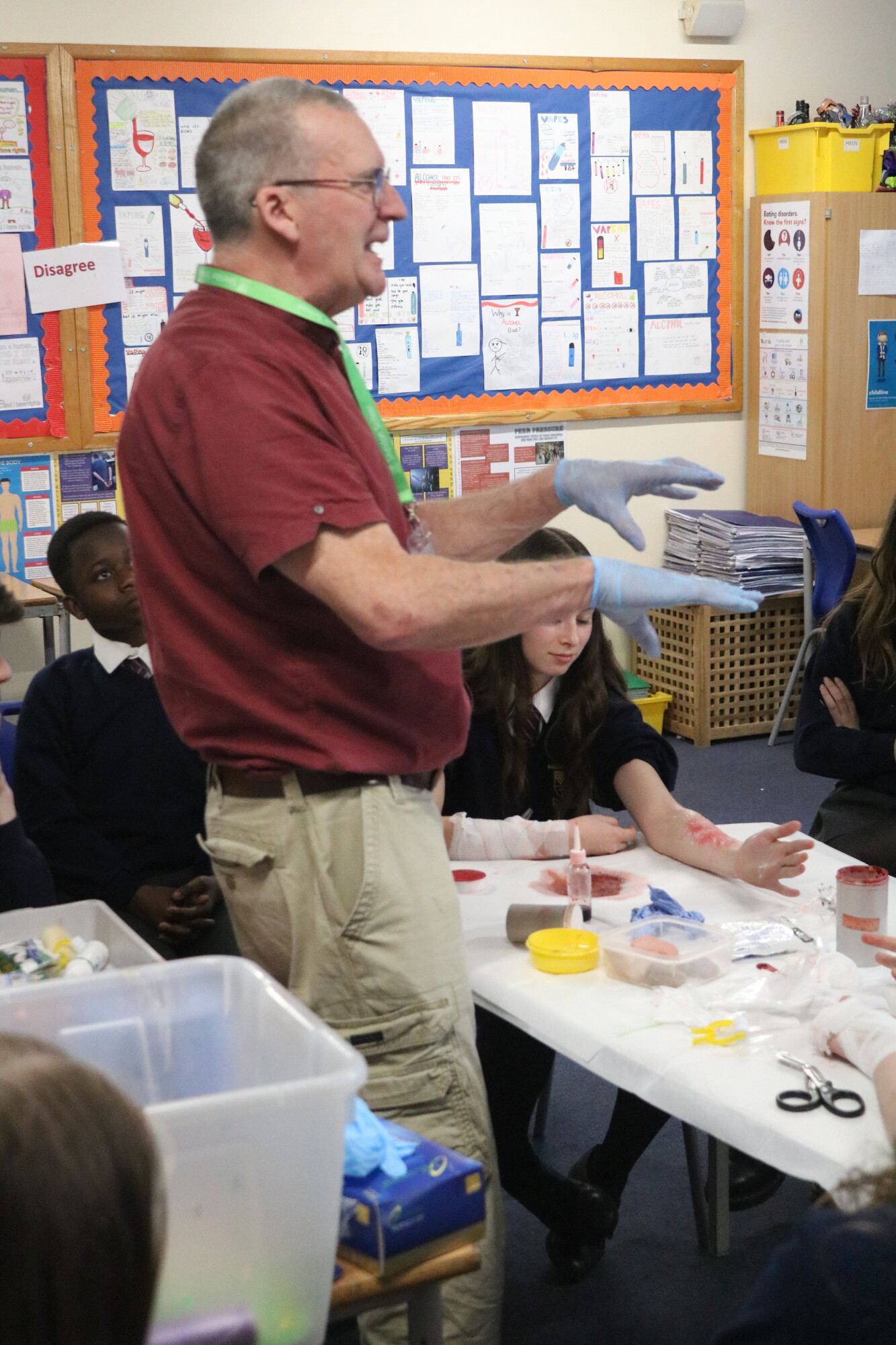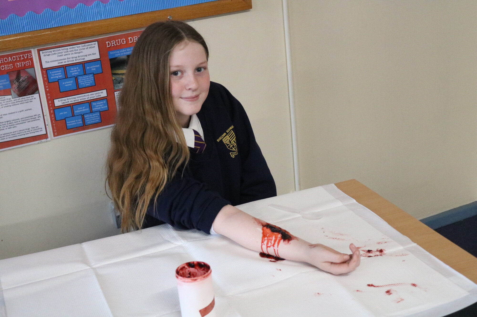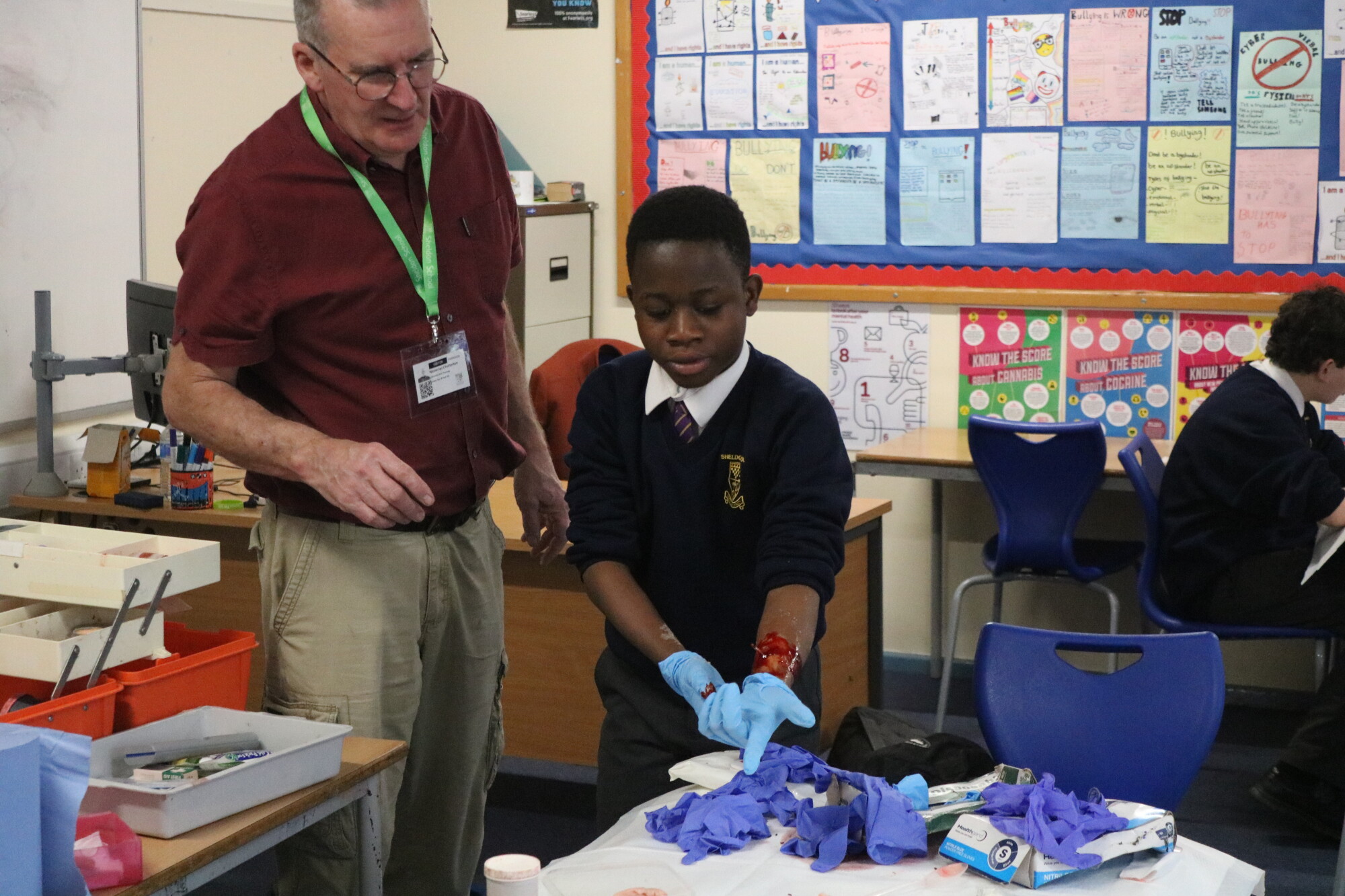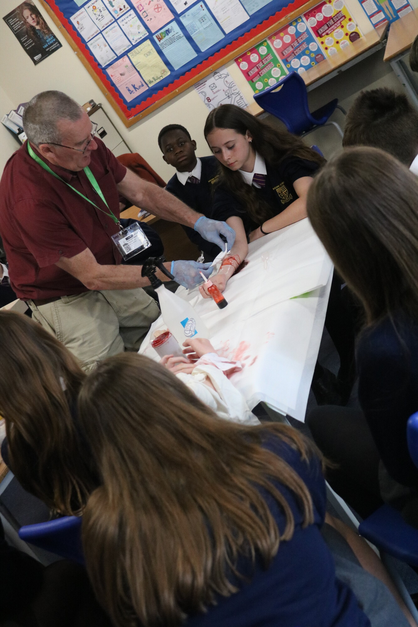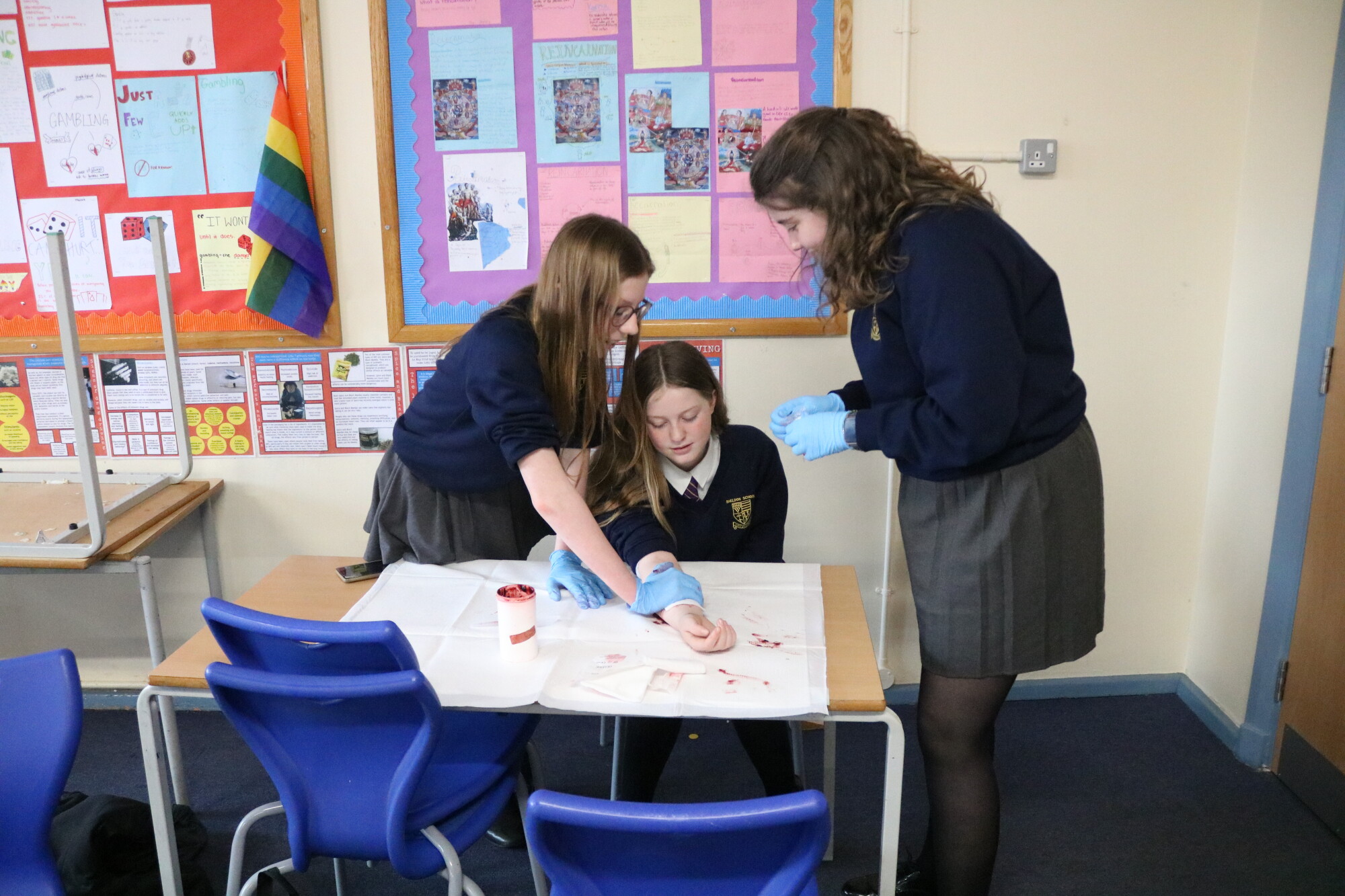 During their training, our students learned all about dressing different types of wounds and burns. They had the opportunity to create gruesome injuries and then perform first aid on each other. They also learned about how to react to allergic reactions and use an Epi Pen safely, how to perform CPR, how to place someone in the recovery position and much more. We have been very impressed by our students participation in the programme. They have paid close attention, asked great questions and had a lot of fun while learning about First Aid. Thank you to Ian for providing this essential training for young people.