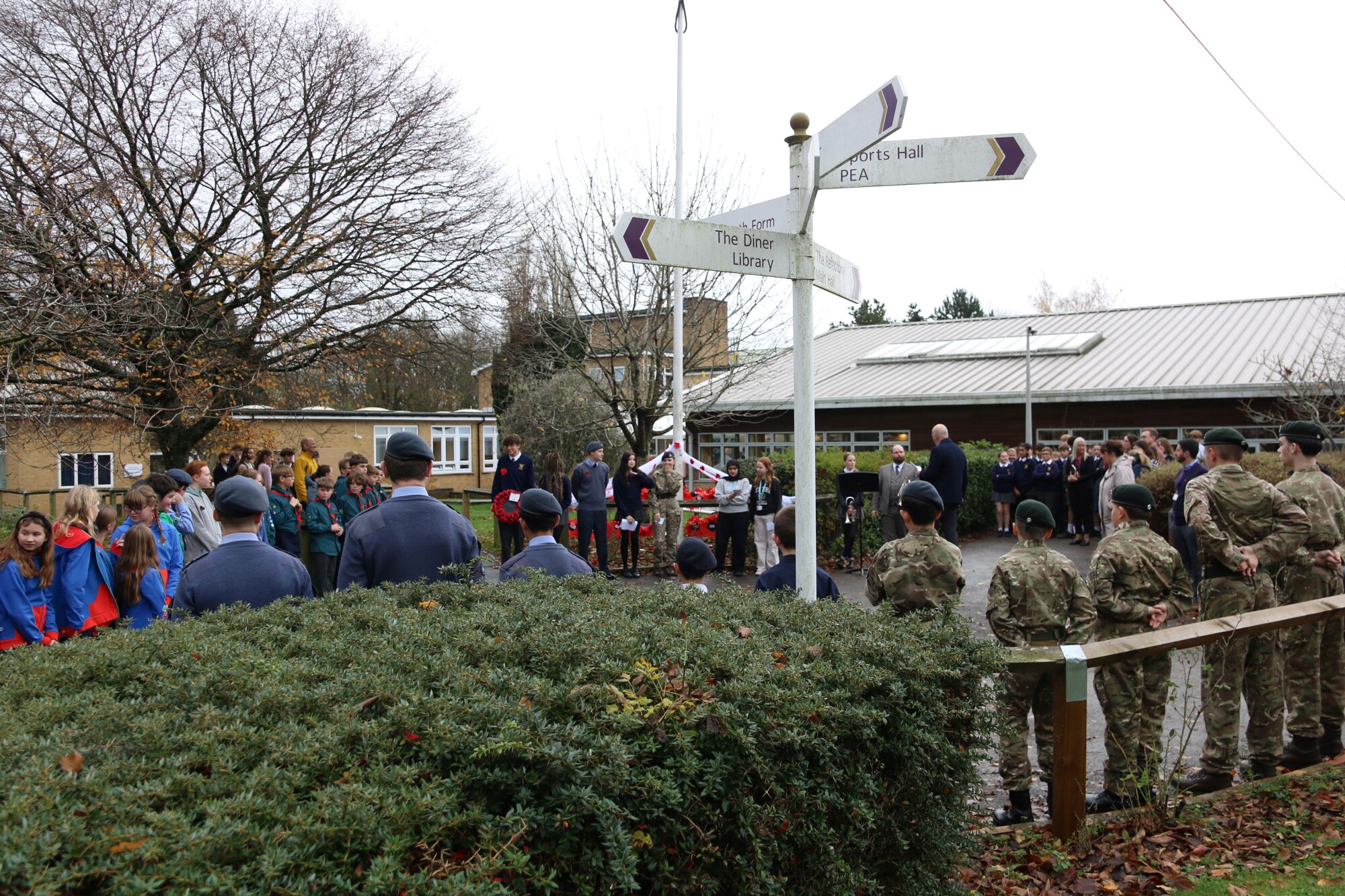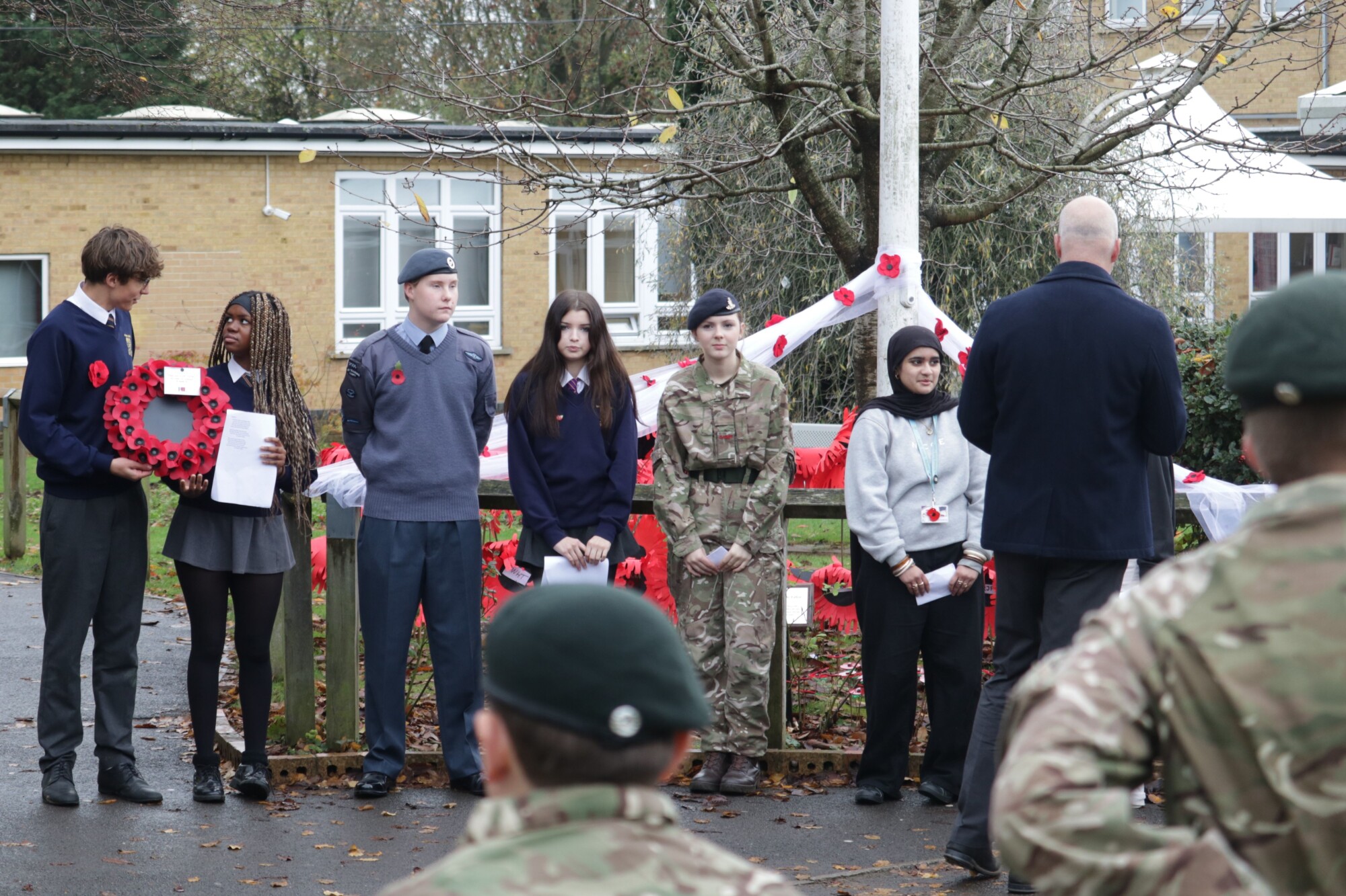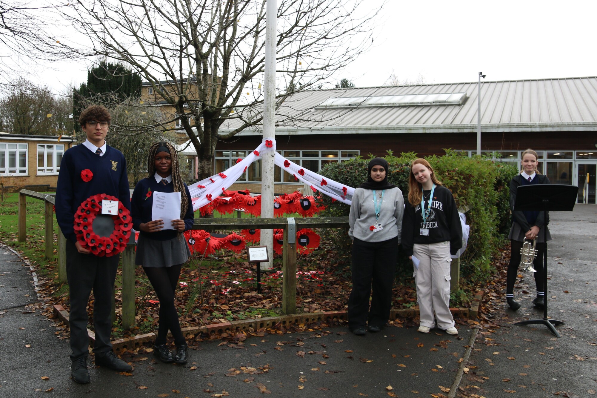 Thank you to everyone who participated in our Remembrance Day Ceremony today, a moment for our school community to come together in reflection and respect. It wonderful to see so many students from cadets, scouts and guides wearing their uniform with pride. Our Remembrance Day display included giant poppies made by each tutor group in the school. We'd like to say a special thank you to Amber, Sayma, Lyla, Samuel, Isabella, Jaden and MK for their readings with Mr Lynch during the ceremony, as well as to Alice for joining Mr Goldsworthy in playing the Last Post. We would also like to share our appreciation for all the staff, former students and everyone in our Sheldon community who have served in the armed forces, past and present.