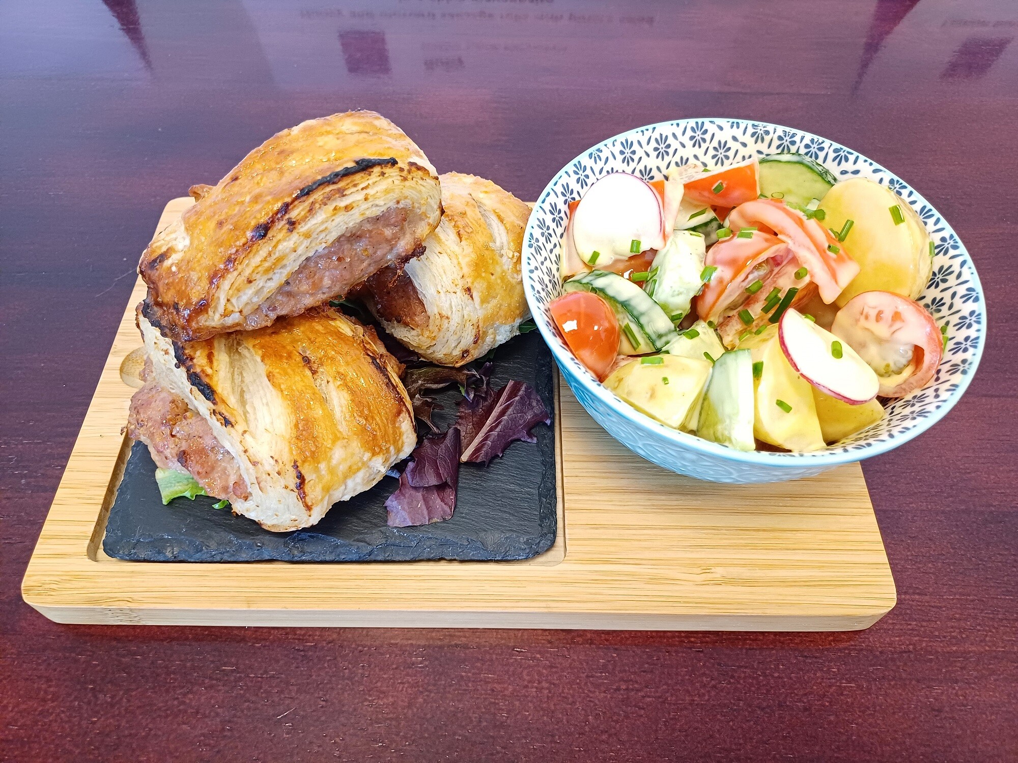Ruby prepared a lovely dish of pork sausage rolls prepared with local honey and mustard, served with rapeseed oil mayo potato salad. The judges said that it was the best sausage roll and rough puff pastry they had eaten in years!