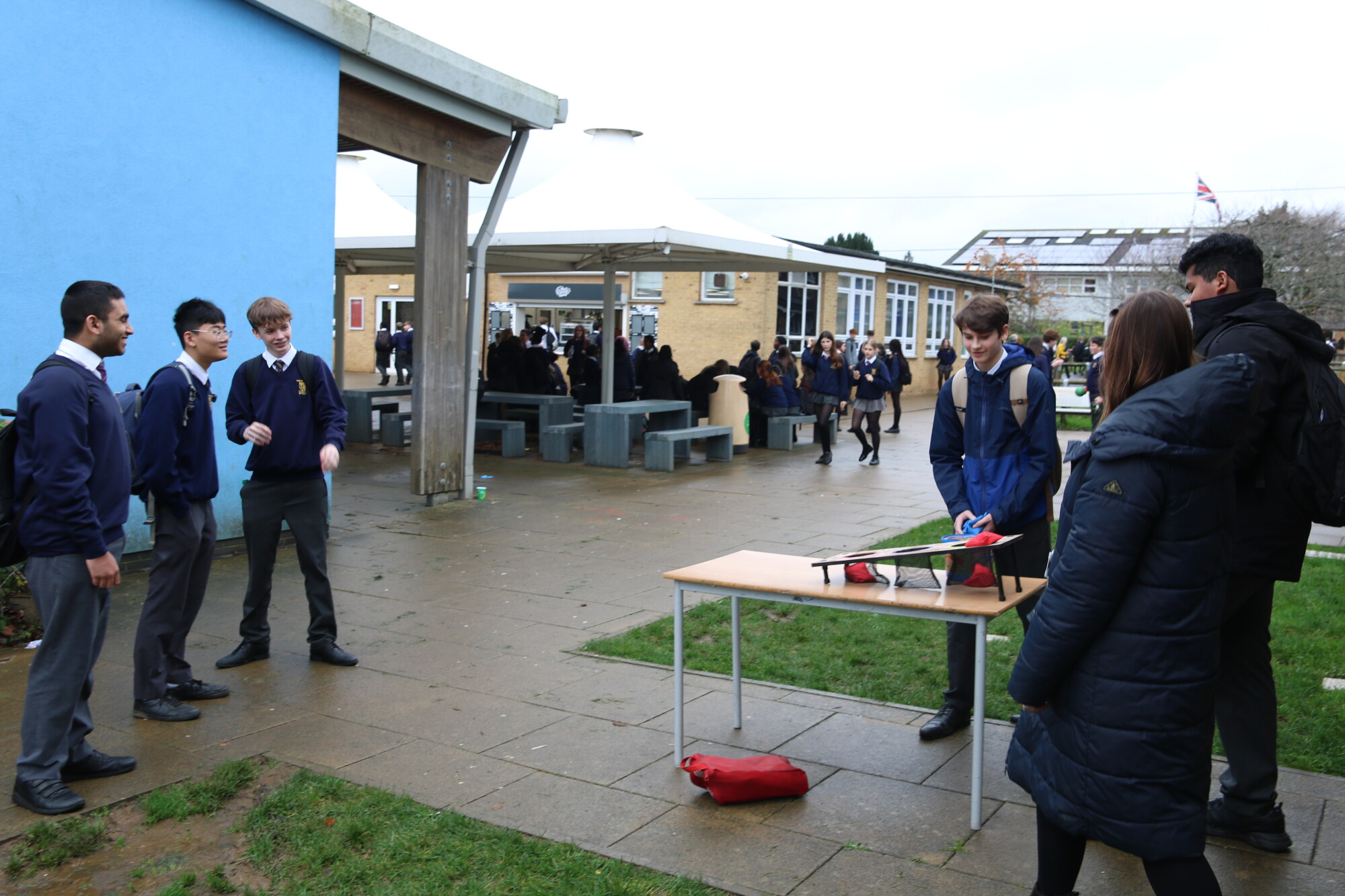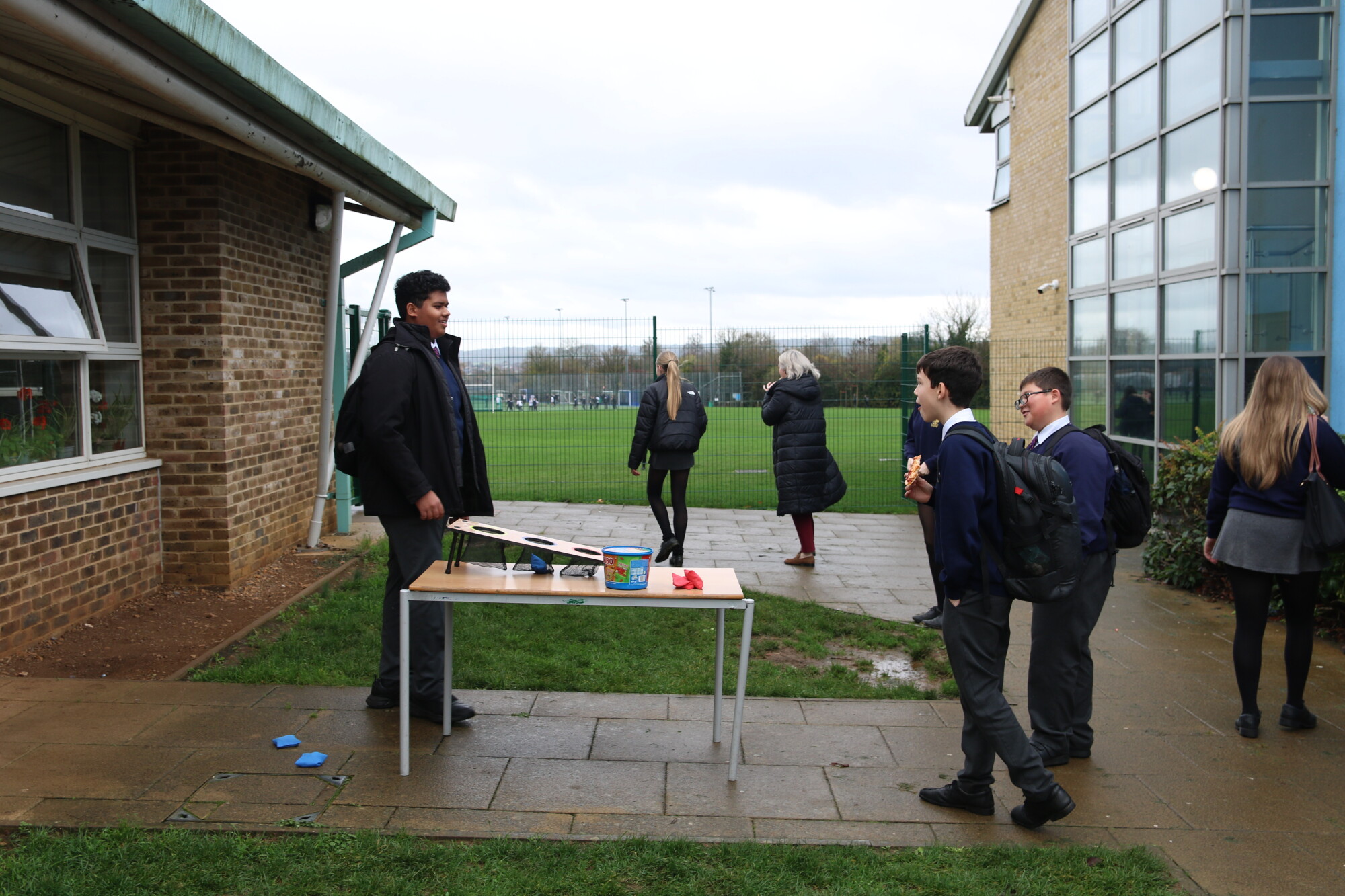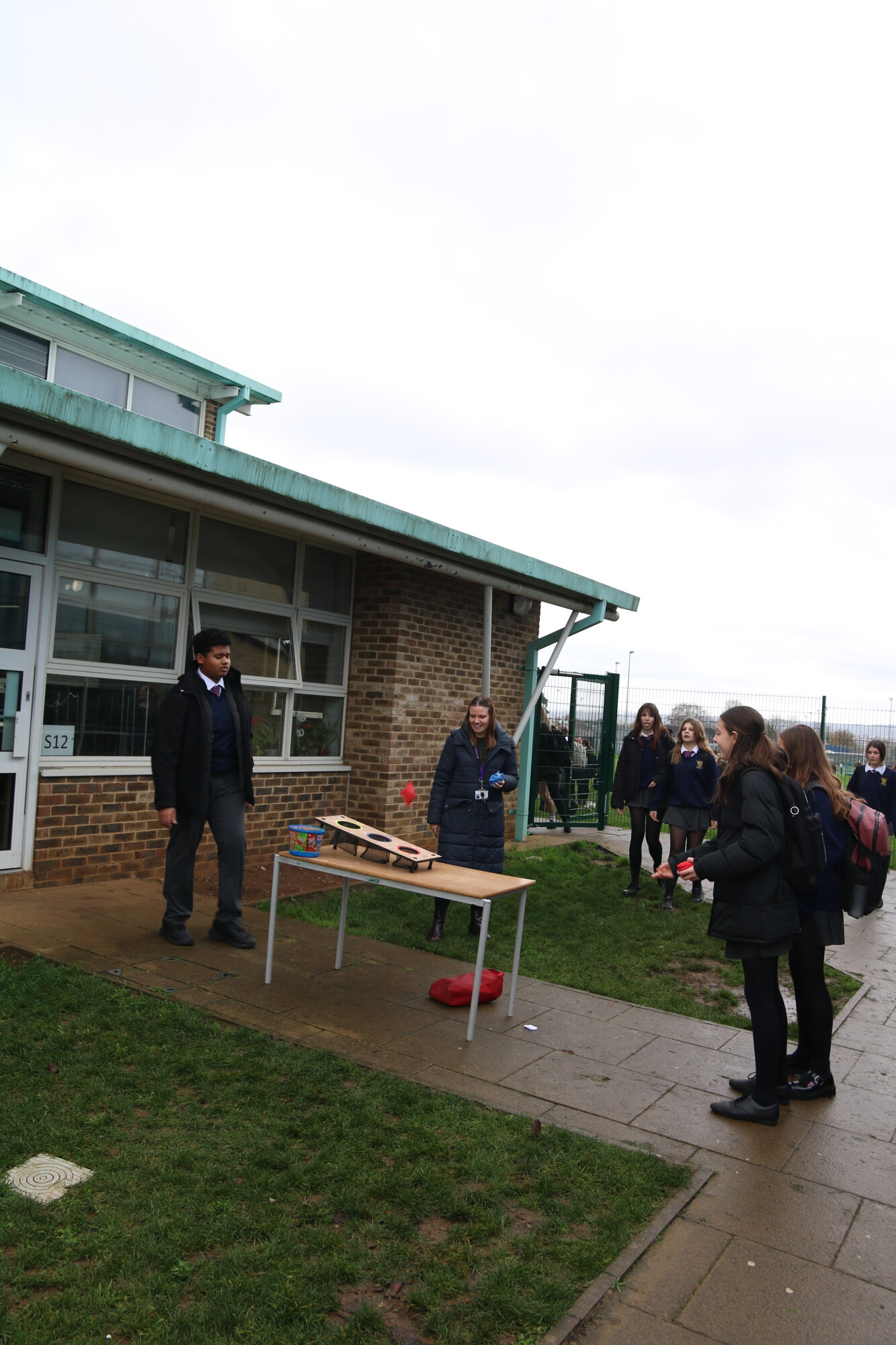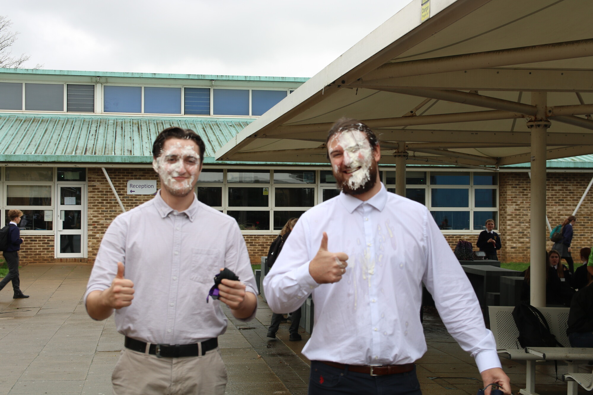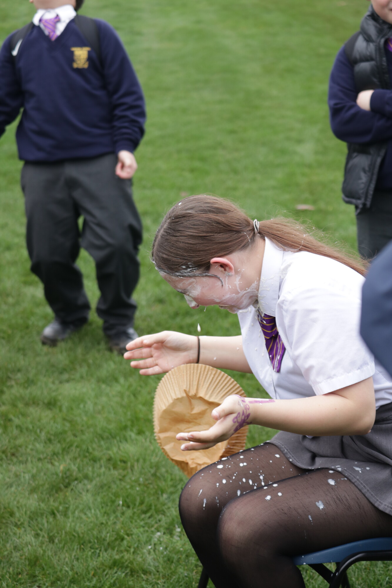 Yesterday, Year 11 hosted traditional playground games in the field during lunch to raise funds for their Prom, as well as our charity of the year, Wiltshire Air Ambulance. Despite the wet weather, we had lots of fun with welly wanging, a coconut shy, cream pies and more! Thank you to all the students that organised the events and to all the enthusiastic participants in the games--especially our trainee teachers who volunteered to get pie faced!