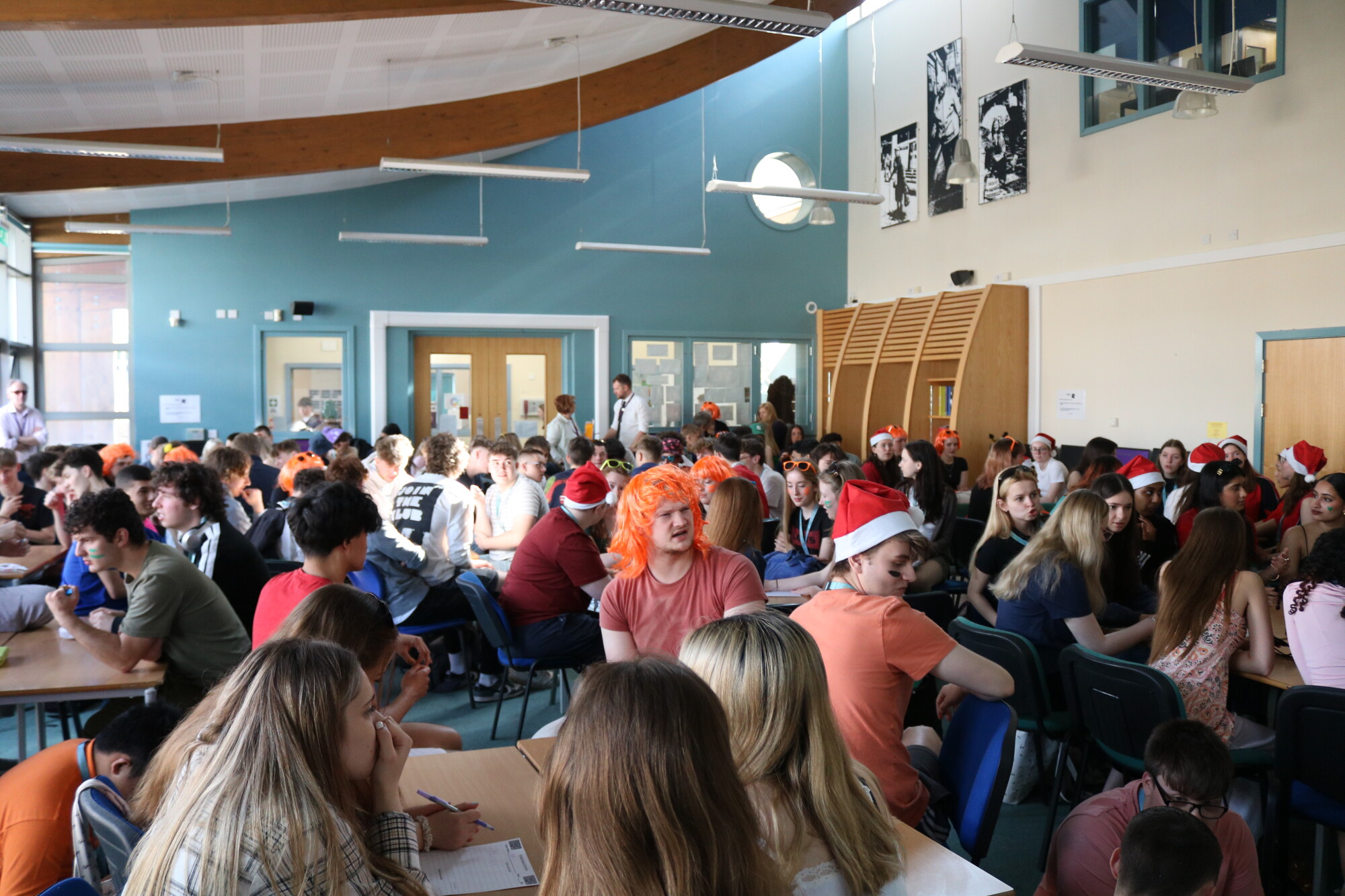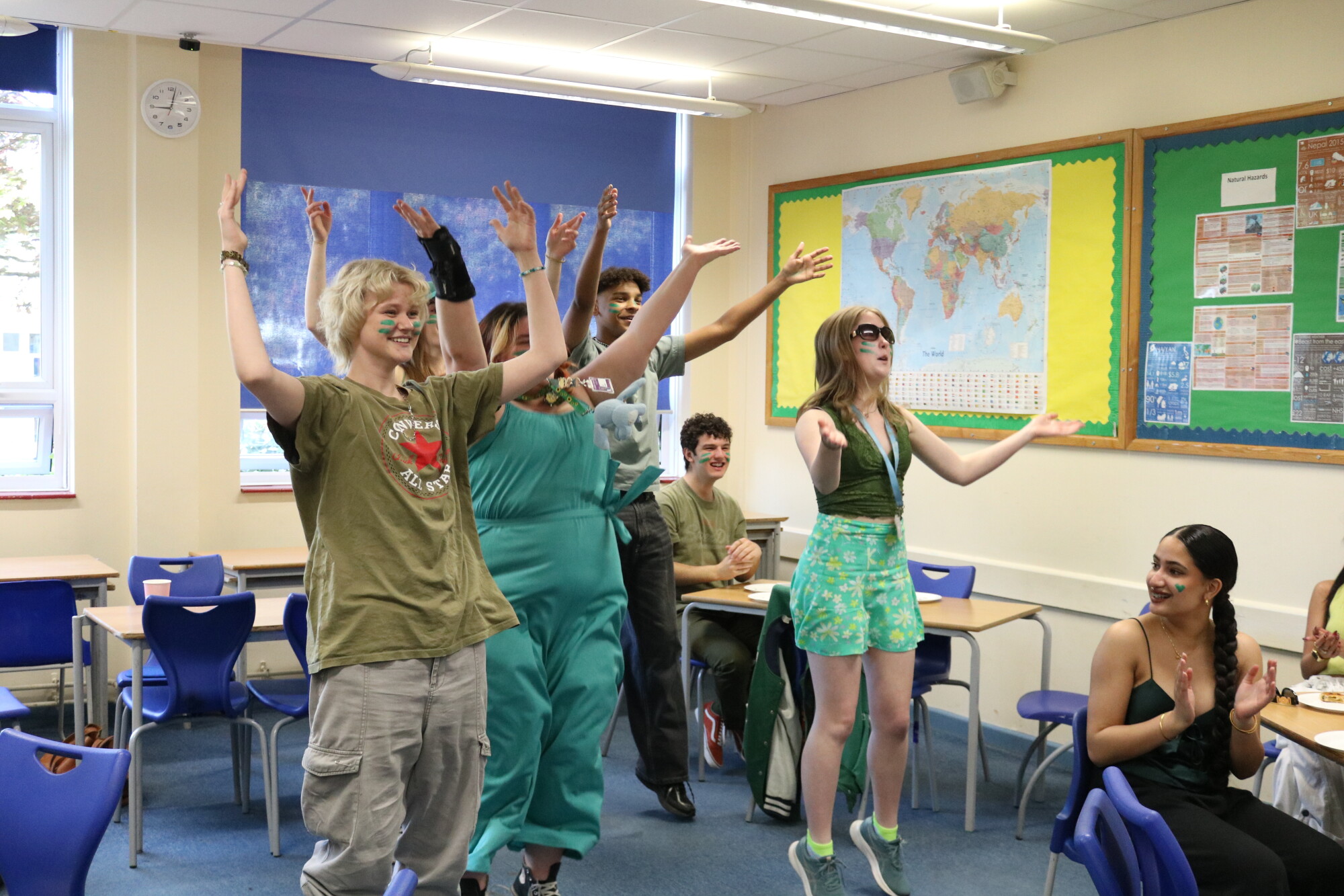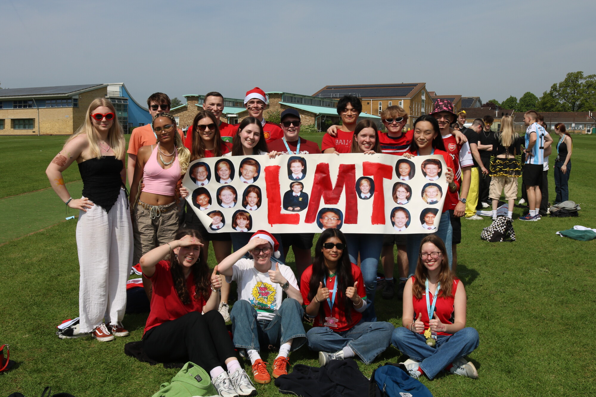 The Leavers' Day began with a celebratory breakfast with tutor groups where everyone got into the spirt of the day, donning their team colours and making creative banners. This was followed by a quiz in the Sixth Form Study Room. Then it was out to the field for a silly sports day complete with paper airplanes, egg and spoon races, fancy dress relay, welly tossing and tug of war. Congratulations to LMR for winning Sports Day and to LMT for getting top marks for their creative banner featuring the groups' Y7 photos! After cooling off with ice lollies it was time for their final school assembly, complete with an incredibly creative video that really showed off the acting talents of Mr Spiers!